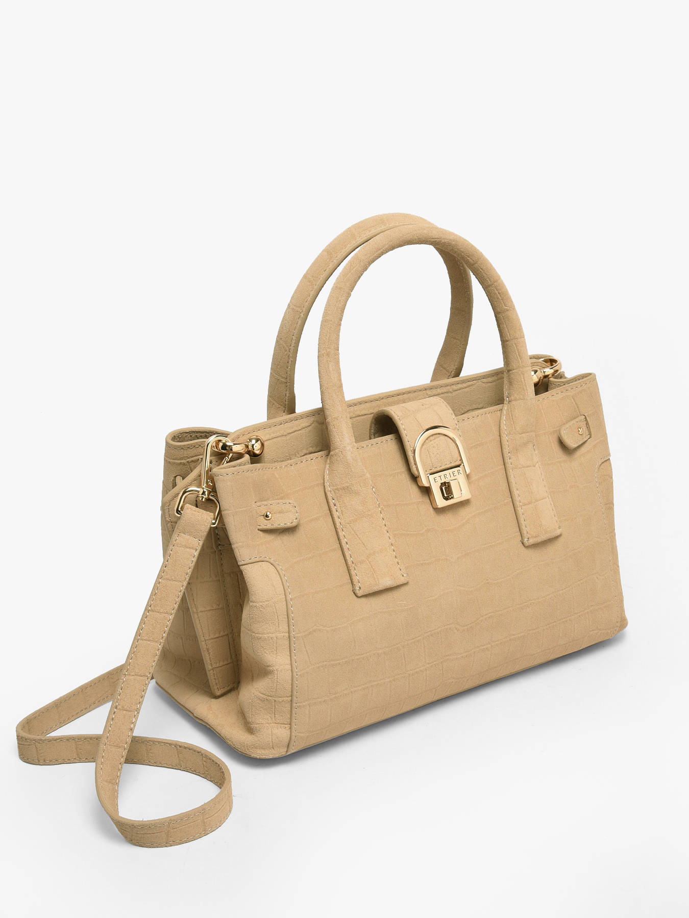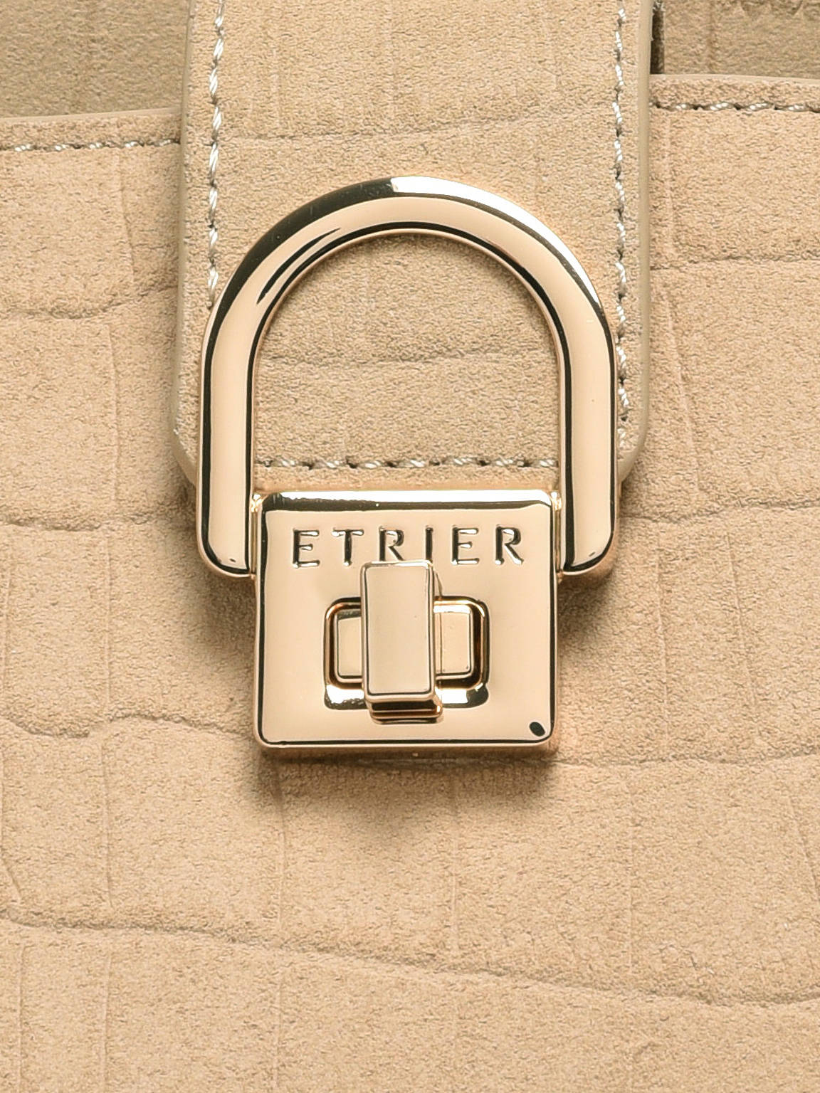 Le sac porté main EQUESTRE CROCO d'Etrier, en format compact et raffiné, est réalisé en cuir de vachette velours imprimé crocodile. Ce mélange audacieux de textures offre une allure sophistiquée et un charme sauvage, emblématique de la ligne Equestre. Il se ferme par une fermeture zippée, un rabat et un fermoir, assurant élégance et sécurité. La hauteur de la anse est de 12 cm, et le sac est équipé d'une bandoulière réglable et amovible pour un porté polyvalent à la main ou en bandoulière. À l'intérieur, deux compartiments, accompagnés de deux poches simples et une poche zippée, facilitent l'organisation de vos essentiels. Les finitions dorées apportent une touche raffinée à ce modèle compact. Ce sac existe également en format M, pour plus d'espace selon vos besoins.